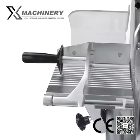 Large-capacity, tilted food carriage glides effortlessly across the stainless steel blade